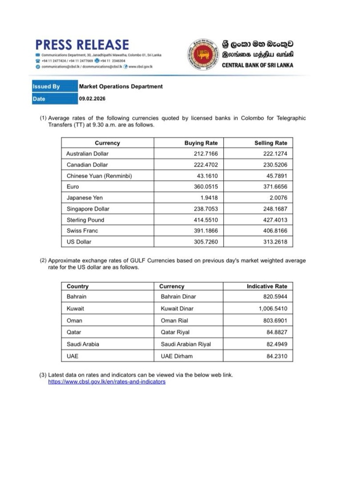 According to the Central Bank of Sri Lanka, the buying rate of the US Dollar has increased from Rs. 305.65 to Rs. 305.72, while the selling rate has also increased from Rs. 313.19 to Rs. 313.26.