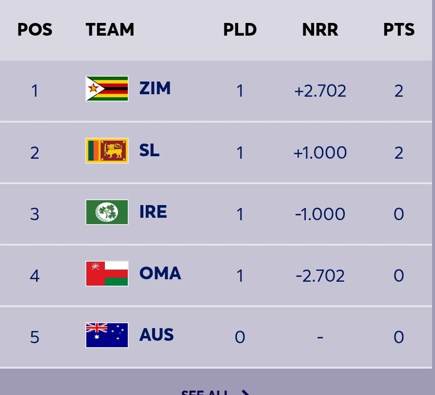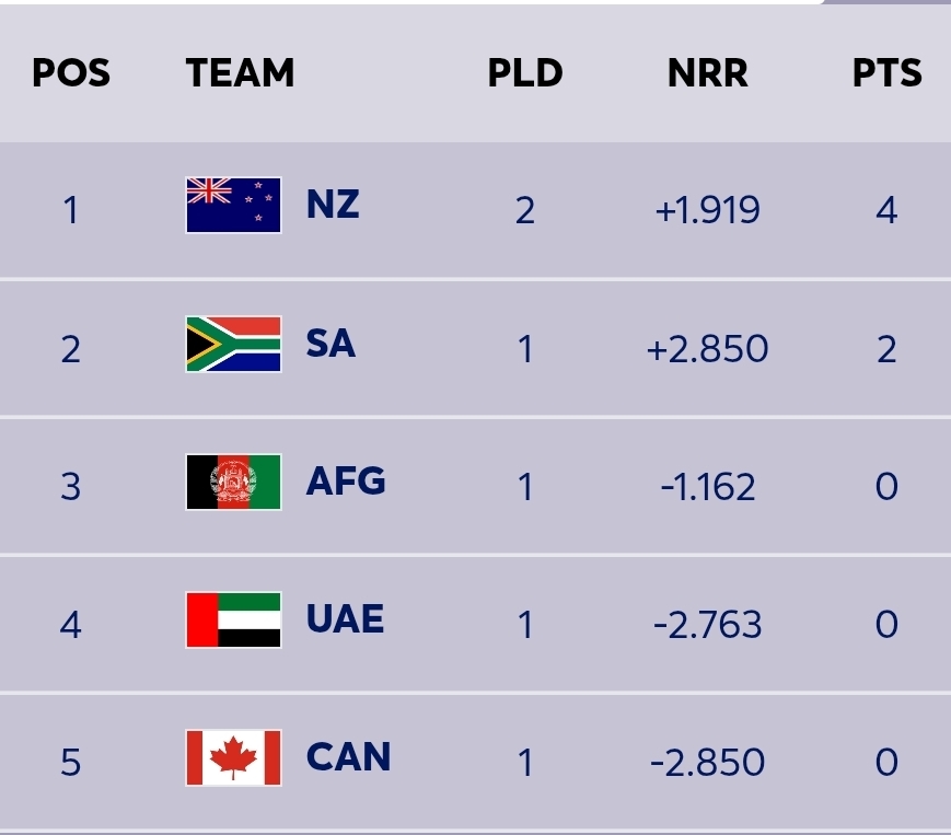 ICC T20 World Cup 2026 – Points Table