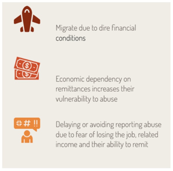 The study suggests that many Sri Lankan female domestic workers migrate due to dire financial conditions, including high household debt, lack of employment opportunities, and the need to support dependents, which makes them economically dependent on remittances. While underscoring that NOT all female domestic workers experience hardship or sexual and gender-based violence (SGBV), among those who do experience such issues, “this economic dependency increases their vulnerability to abuse”. This is mainly because of delays in or avoidance of reporting abuse due to fear of job loss, related income decline, and their inability to remit earnings.