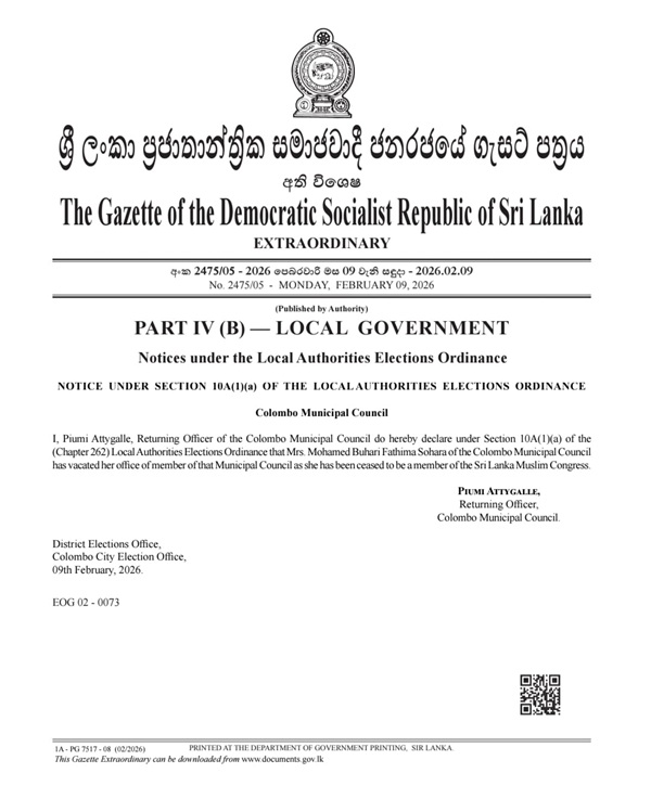 Sohara Buhari, a member of the Sri Lanka Muslim Congress (SLMC) in the Colombo Municipal Council, has lost her council seat following disciplinary action taken by the party.