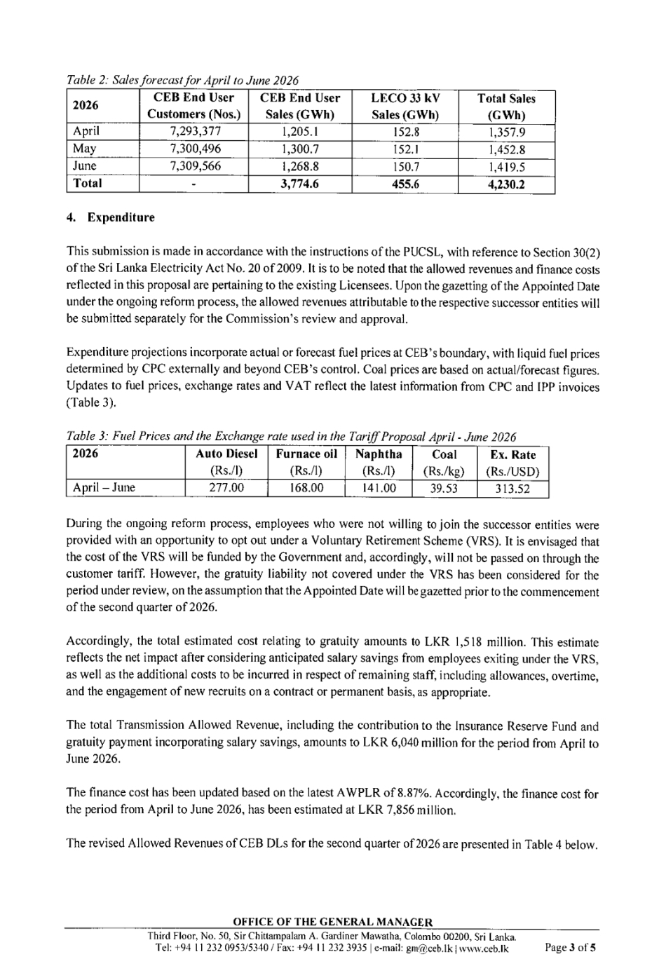 In a submission dated February 13 to the Public Utilities Commission of Sri Lanka (PUCSL), the CEB said the total projected cost for the April–June period stands at Rs. 136.5 billion, while estimated revenue at existing tariffs amounts to Rs. 116.9 billion.