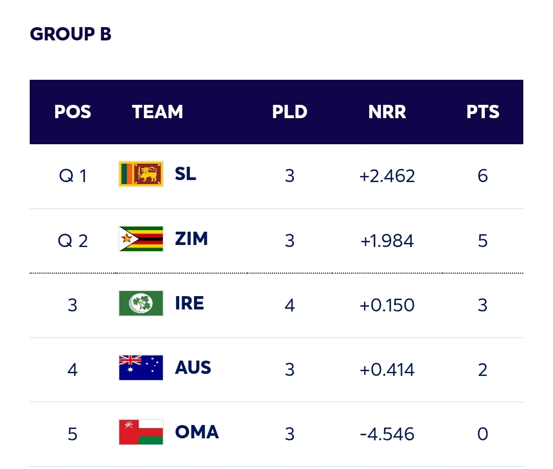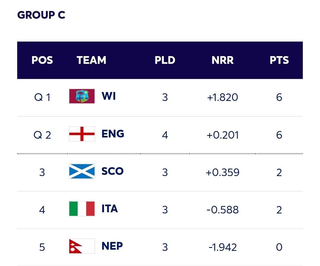 ICC Men’s T20 World Cup 2026 Points Table : Standings & Ranking