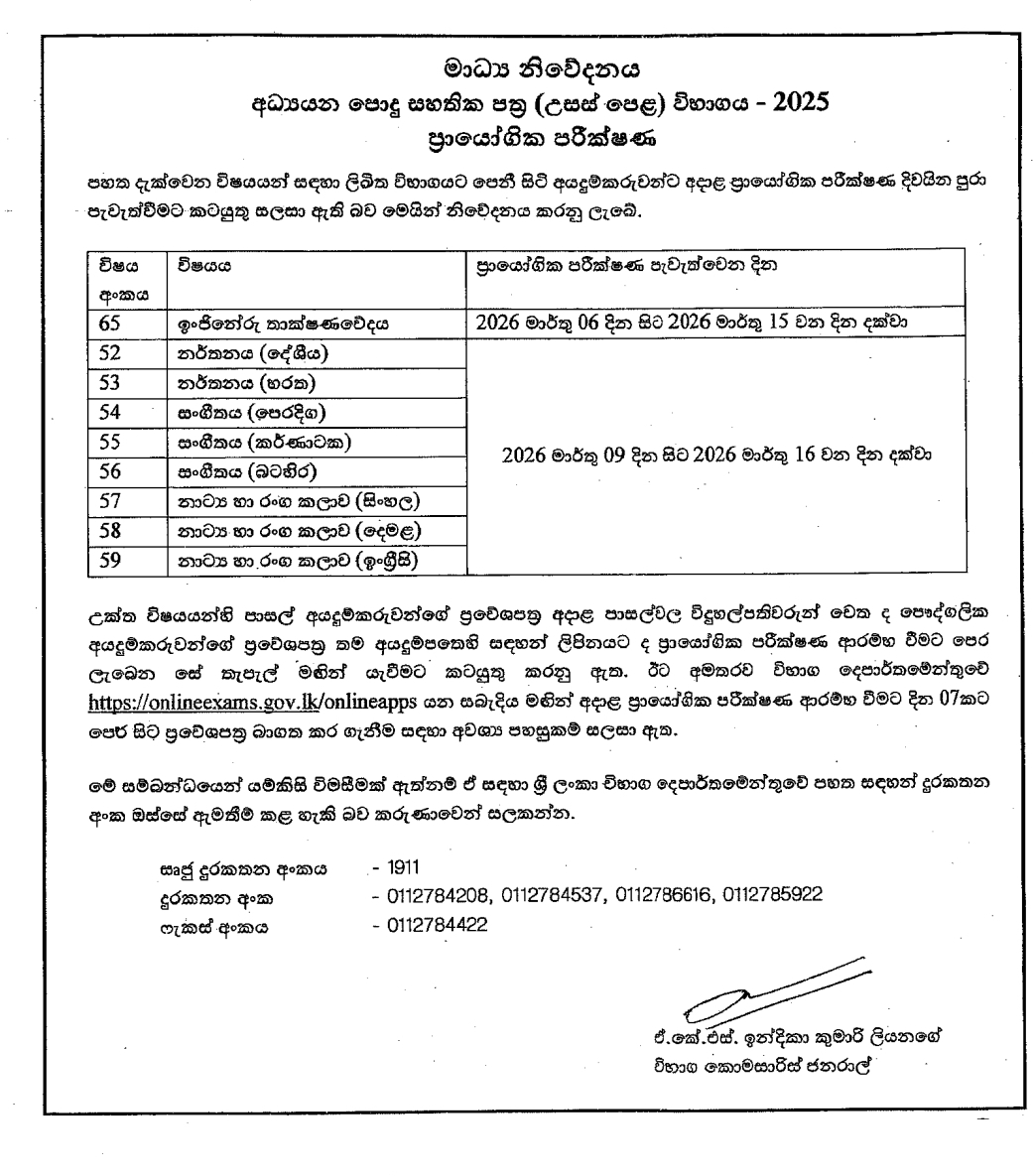 GCE A/L Exam 2025 : Notice for all students