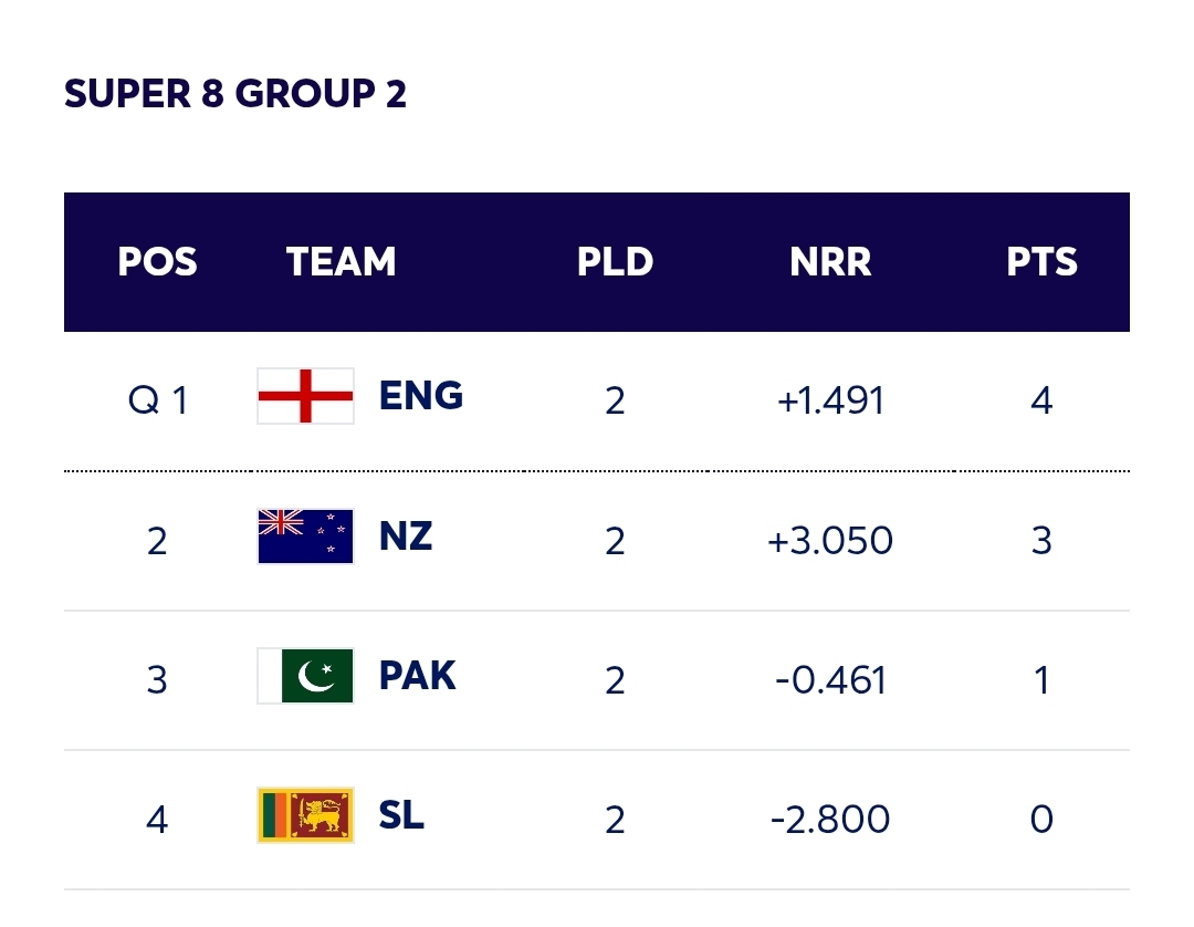 T20 World Cup Super 8 Points Table