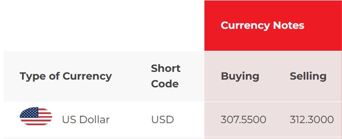 At NDB Bank, the buying rate of the US dollar remains unchanged at Rs. 306.90, while the selling rate is also unchanged at Rs. 313.40.