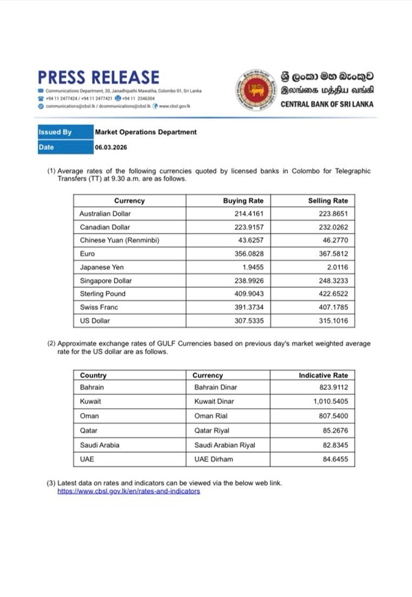 The Sri Lankan Rupee has depreciated further against the US Dollar today (06 March), compared to Thursday.