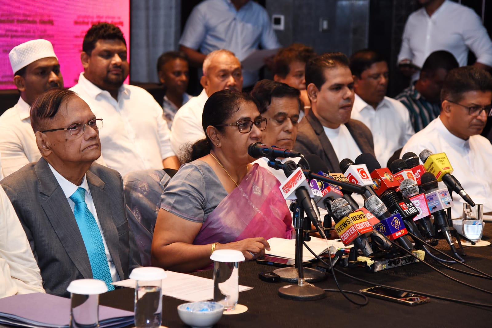 Parliamentarians Dayasiri Jayasekara and Mano Ganesan, former MPs Asanka Navaratne, Premanath C. Dolawatte and Ajith Mannapperuma, SLPP media spokesman Sanjeeva Edirimanna, UNP Deputy Leader Ruwan Wijewardene, UNP General Secretary Thalatha Athukorala and UNP Chairman Vajira Abeywardena were also present.