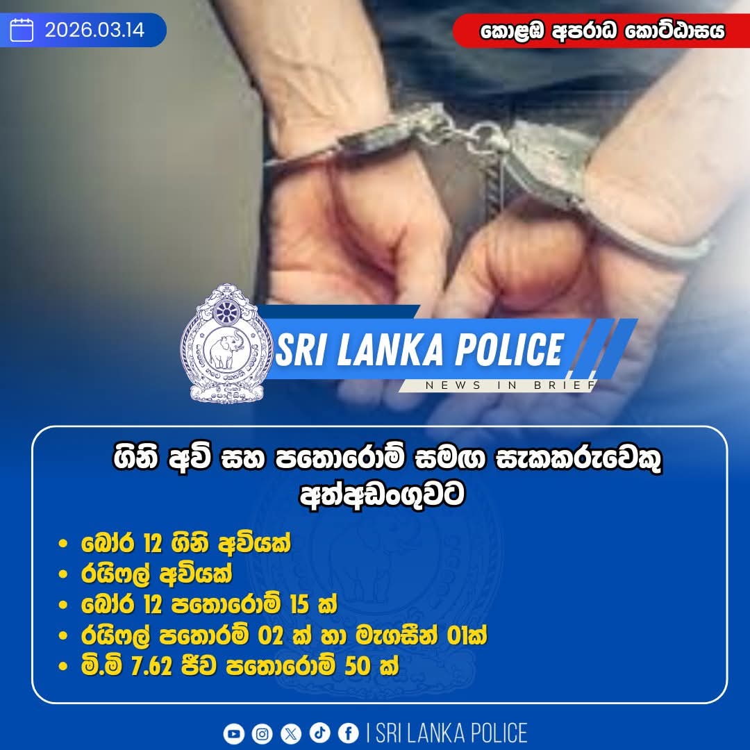 The arrest was made by officers attached to the Crime Intelligence Unit of the Colombo South Crimes Division following a tip-off.