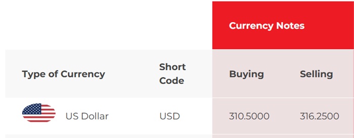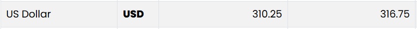 At NDB Bank, the buying rate and selling rates of the US dollar have reduced from Rs. 310.50 to Rs. 310.25 and from Rs. 317 to Rs. 316.75, respectively.
