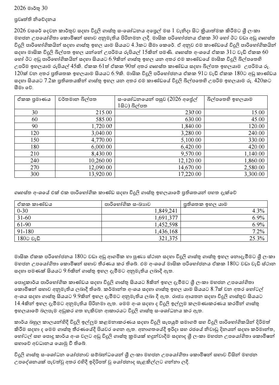 Consumers using above 180 units face the steepest increase of around 25% under the new PUCSL revision.