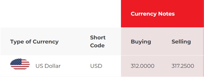 At NDB Bank, the buying rate and selling rates of the US dollar have increased from Rs. 311.75 to Rs. 312.25 and from Rs. 318.25 to Rs. 318.75, respectively.