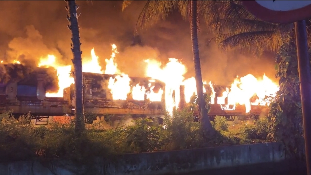 According to reports, four disused train compartments had been parked in the vicinity of the Galle Railway Station, of which two compartments were affected by the sudden fire.
