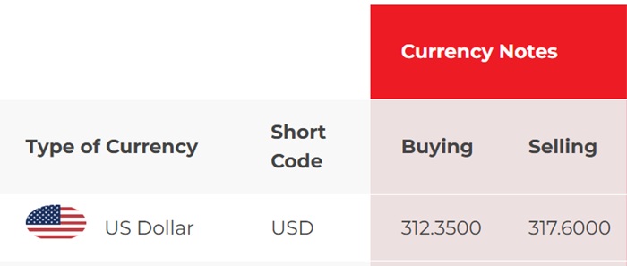 At NDB Bank, the buying rate and selling rates of the US dollar have increased from Rs. 312.05 to Rs. 312.20 and from Rs. 318.55 to Rs. 318.70, respectively.