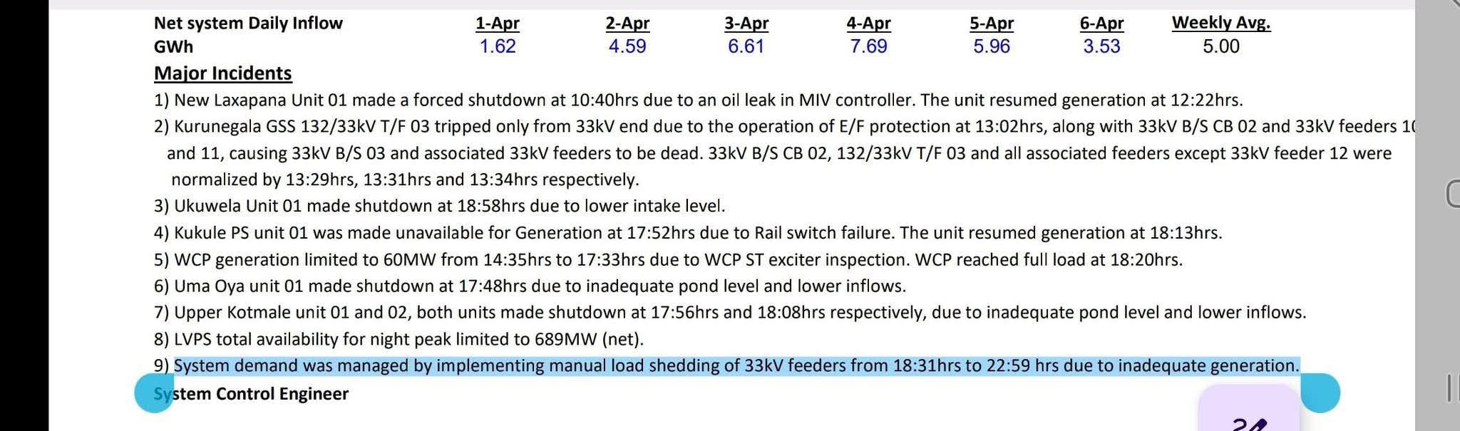 He also shared what he described as an official system report, which noted that system demand was managed by implementing manual load shedding of 33kV feeders from 6:31 pm to 10:59 pm due to inadequate generation.
