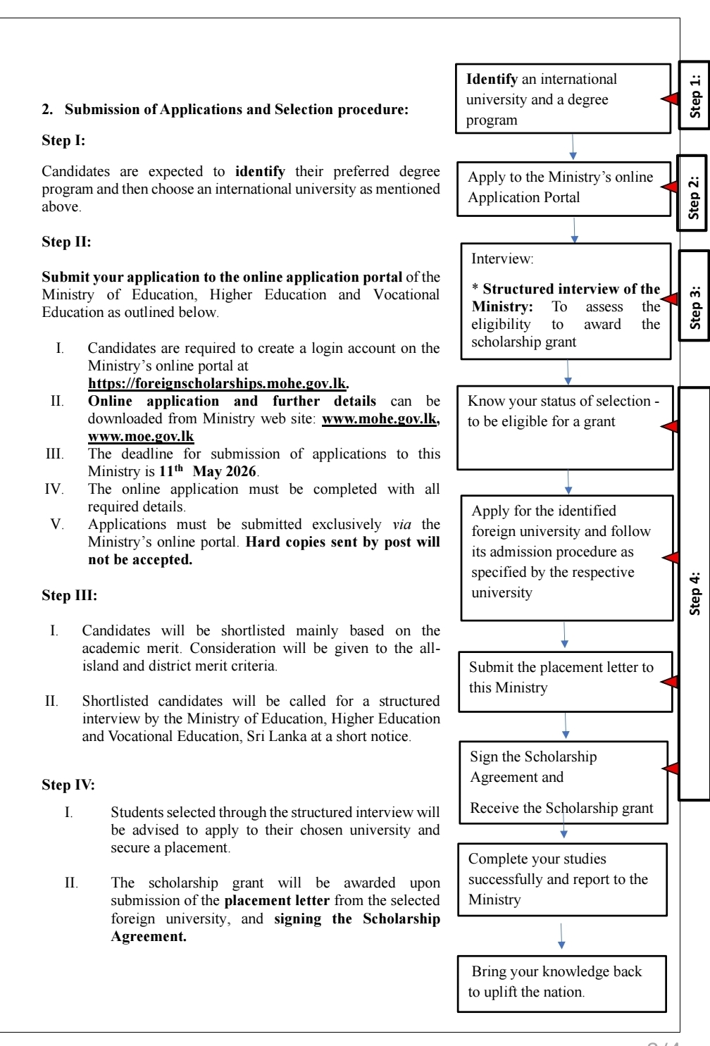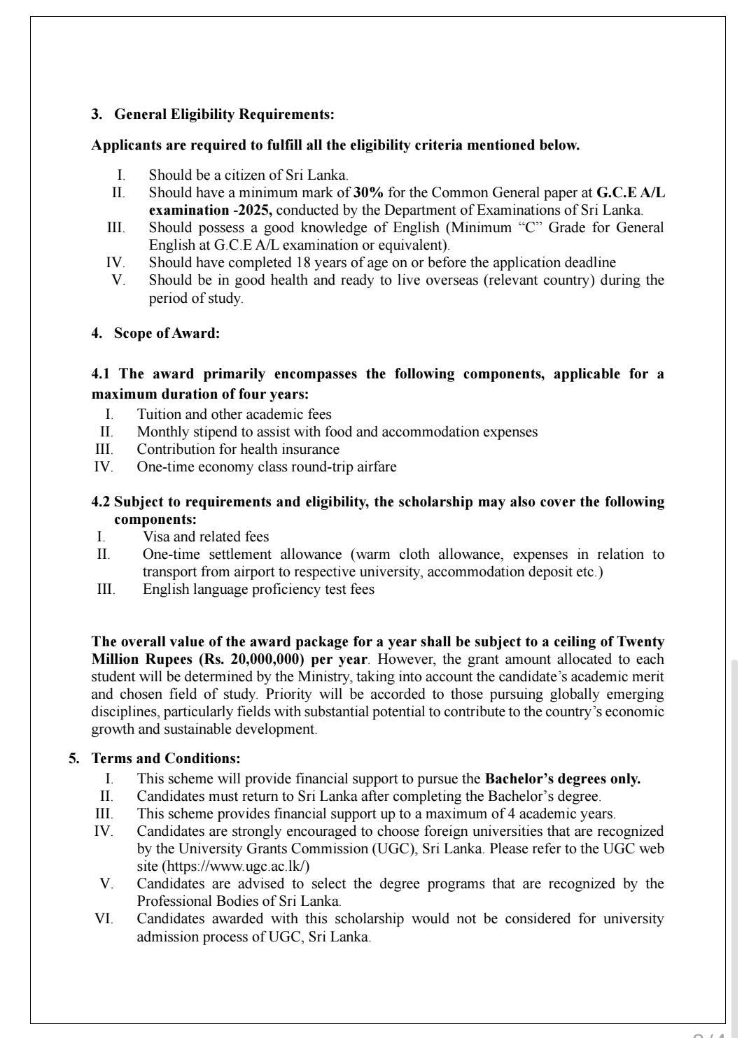 Students from all academic streams are eligible to apply, while priority will be given to those selecting globally emerging fields or disciplines not currently offered in Sri Lankan state universities.