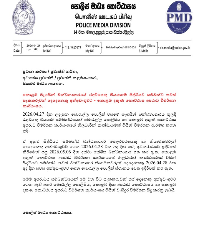 Borella Police, the Colombo Crime Division and the Colombo South Crimes Division are carrying out investigations. (Newswire)