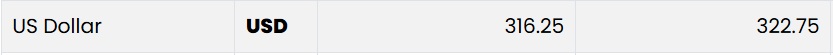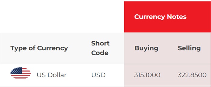 At NDB Bank, the buying and selling rates of the US dollar have increased from Rs. 314.50 to Rs. 316.25 and from Rs. 321 to Rs. 322.75, respectively.