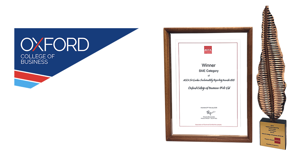 Oxford College of Business (OCB), Sri Lanka’s leading private higher education institution, has been named the Winner in the SME Category at the prestigious ACCA Sri Lanka Sustainability Reporting Awards 2025, reinforcing its position as a national benchmark for transparency, accountability, and sustainability leadership in higher education.
