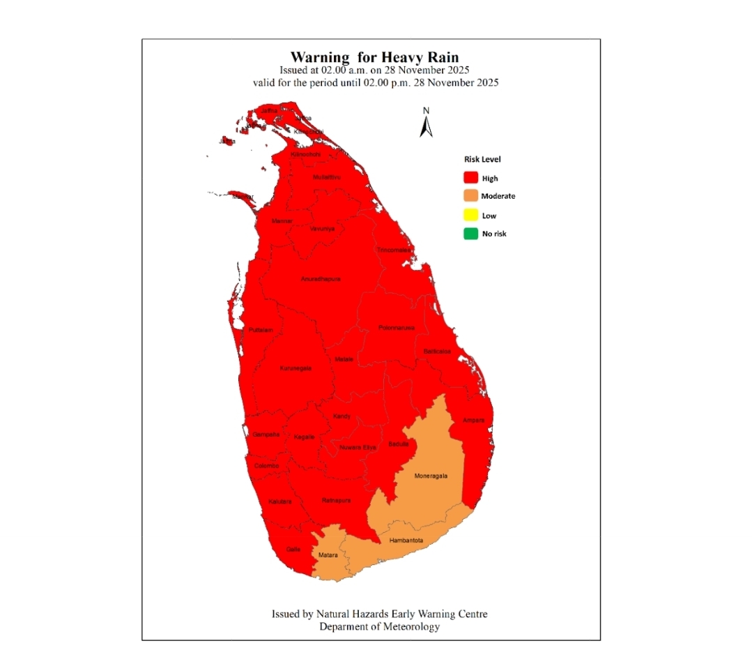 Red Warning for Cyclonic storm in the vicinity of Sri Lanka