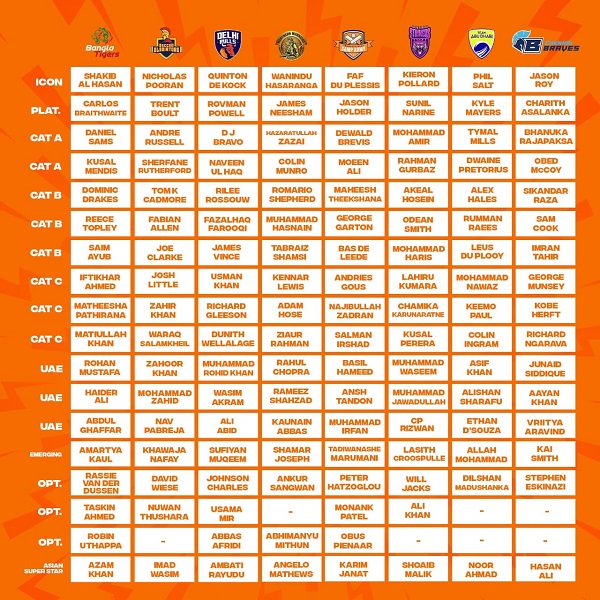 Fourteen Sri Lankan cricketers have been picked for the upcoming Abu Dhabi T10 League.
